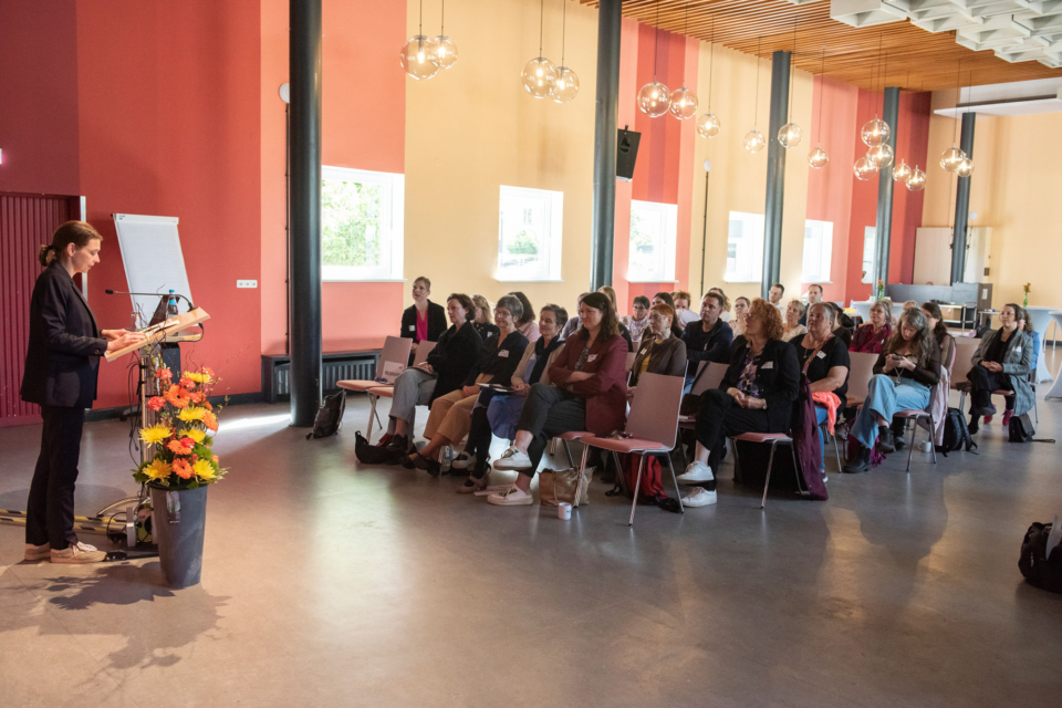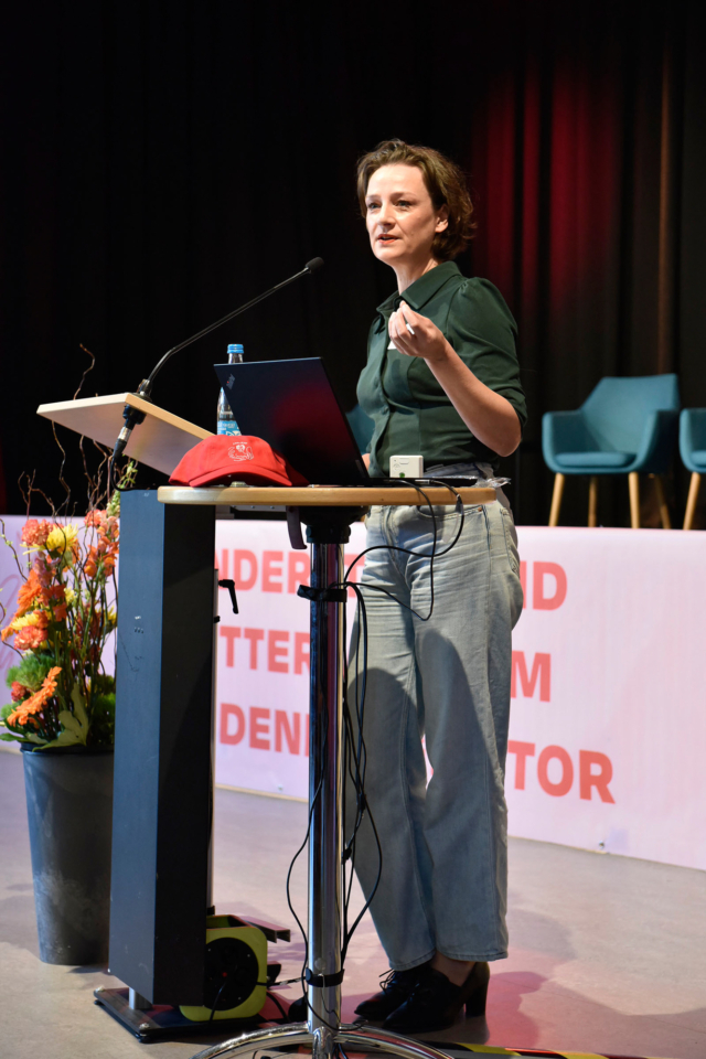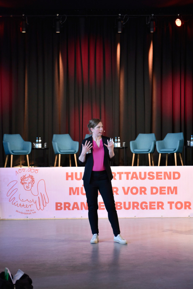 Die Autorin und Genderforscherin Dr. Franziska Schutzbach nahm das Publikum auf eine spannende Reise in die gesellschaftlich geprägte Mutterrolle mit, die eine der Ursachen für die große Erschöpfung von Müttern und Frauen ist. Ihr Plädoyer dafür, Sorgearbeit ins Zentrum der Gesellschaft zu stellen, sie als gleichwerten Anteil an der Wirtschaft wie Produktion und Lohnarbeit zu betrachten und dementsprechend gerecht auf alle Geschlechter zu verteilen, traf auf große Zustimmung.