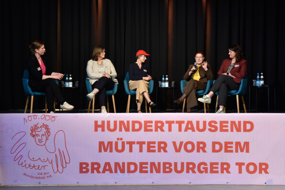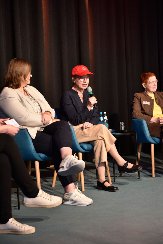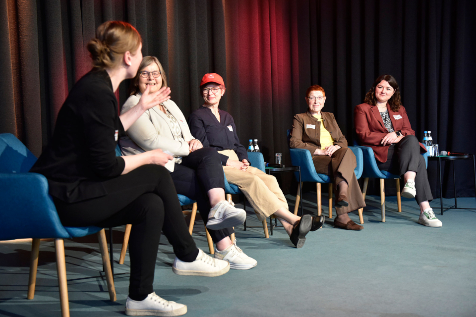 Gemeinsam mit vielen alten und neuen Wegbegleiter*innen konnten wir bei unserem Fachtag am 9. Mai auf 55 Jahre erfolgreiche Arbeit für gesundheitlich belastete Mütter und seit mehr als 10 Jahren auch für Väter und pflegende Angehörige zurückblicken. Nach dem Grußwort der Vorsitzenden des Kuratoriums des Müttergenesungswerks Svenja Stadler führte Moderatorin Sarah Zöllner durch das abwechslungsreiche Programm. Auf dem Podium diskutierten die langjährige Geschäftsführerin des Müttergenesungswerk, Anne Schilling, die aktuelle Geschäftsführung Rebekka Rupprecht, die Leiterin der Mutter-Kind-Klinik Haus Daheim in Bad Harzburg, Antje Krause und die ehemalige Vorständin der Diakonie Deutschland, Maria Loheide, vergangene und gegenwärtige Herausforderungen. Die Müttergenesung ist ein absolut unverzichtbares Angebot in einer Gesellschaft, in der Mütter und Frauen immer noch den größten Teil der unbezahlten Sorgearbeit in den Familien leisten und zudem oft auch noch berufstätig sind. Sie leistet einen wichtigen Beitrag zur Stabilität der Familien und benötigt dringend eine auskömmliche Finanzierung für den Erhalt und den Ausbau von Maßnahmeplätzen.