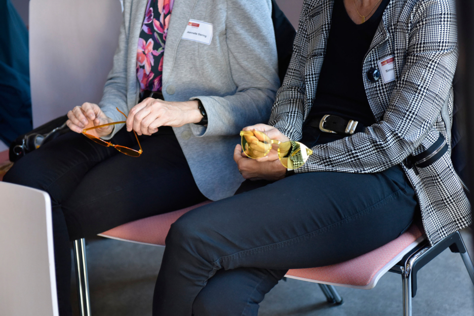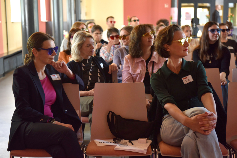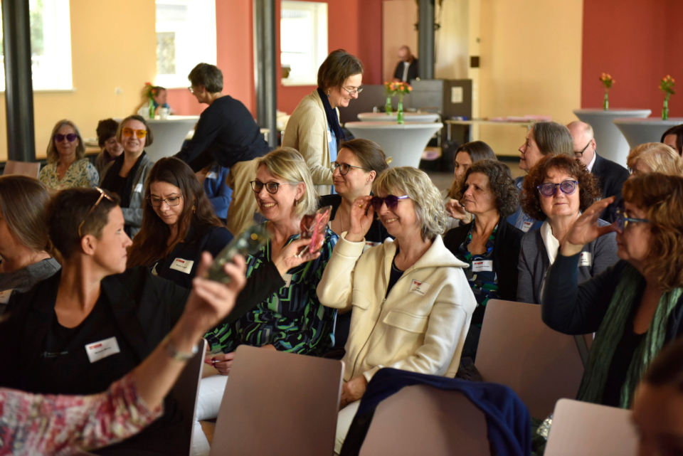 55 Jahre Tradition bedeutet keineswegs stehen zu bleiben, im Gegenteil, der Fachverband schaute auch nach vorne und auf eine nötige Weitung des Blicks, um auf sich verändernde Bedarfe einzugehen. Zur kreativen Unterstützung des Perspektivwechsels konnten sich die Teilnehmer*innen bunte Brillen aufsetzen und mit ihren Nachbar*innen ins Gespräch gehen.