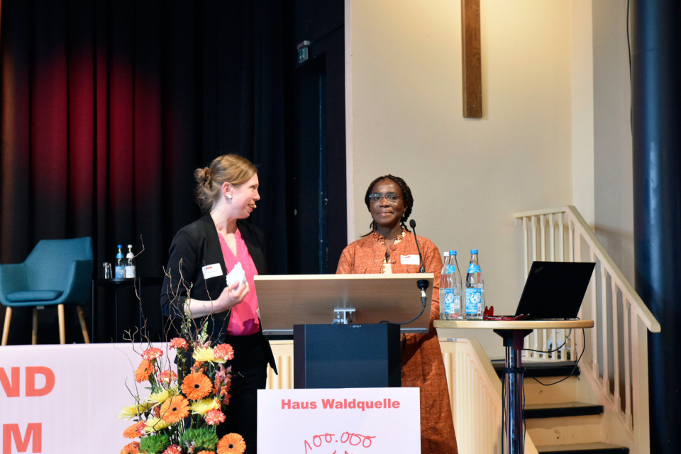 Dr. Gwladys Awo, Gründerin des Vereins LESSAN e.V. in Hamburg, der sich die Überwindung von weiblicher Genitalbeschneidung, geschlechtsspezifischer Gewalt und Rassismus einsetzt, lenkte den Blick auf Mütter/Frauen mit Migrations- oder Fluchtgeschichte. Sie haben aufgrund von Sprachbarrieren und auch von rassistischen Strukturen in unserer Gesellschaft einen schlechteren Zugang zu Gesundheitsangeboten. Sie sind auch in den Mutter-Kind-Maßnahmen unterrepräsentiert. Dr. Awo stellt auch Praxisprojekte vor, die sich gezielt an Frauen in ihren migrantischen communities richten und ihre Bedarfe berücksichtigen.
