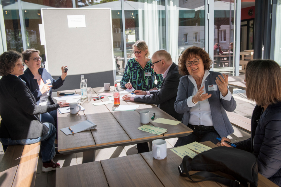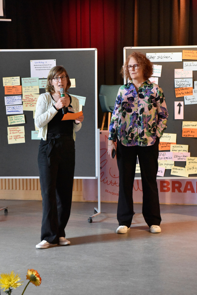 In vier parallelen Workshops wurden einzelne Themen in intensiver Arbeitsatmosphäre und mit viel Spaß an der Sache vertieft. Es ging um die Vielfalt von Muttersein, um die Überwindung von Rollenklischees (mit der Mütterinitiative Millie&Me), um Unterstützung der Arbeit mit Müttern durch digitale Formate und um die Stärkung von alleinerziehenden Müttern (mit der Stiftung Alltagsheldinnen). Die vielen guten Impulse wurden gesammelt und für die zukünftige Arbeit dokumentiert.